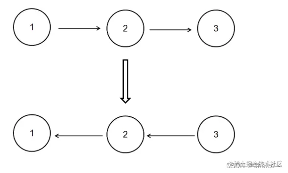 - 在遍历链表时,将当前节点的next 指针改为指向前一个节点。由于节点没有引用其前一个节点,因此必须事先存储其前一个节点。在更改引用之前,还需要存储后一个节点。最后返回新的头引用。