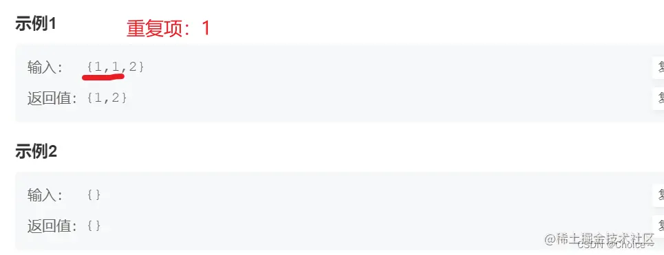 给出的链表为1→1→2→3→3,返回1→2→3.