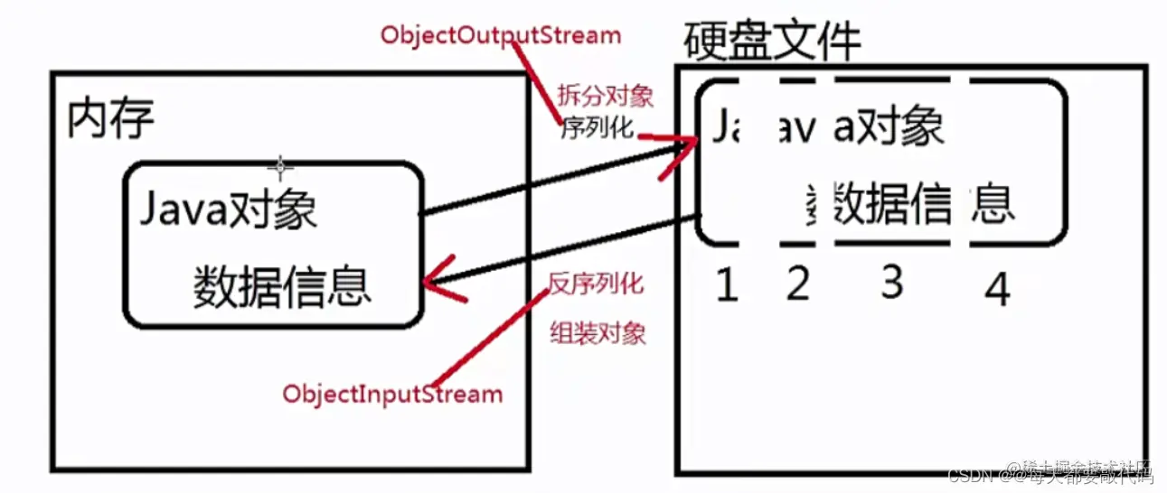 反序列化: 将硬盘上的数据重新恢复到内存当中,恢复成java对象