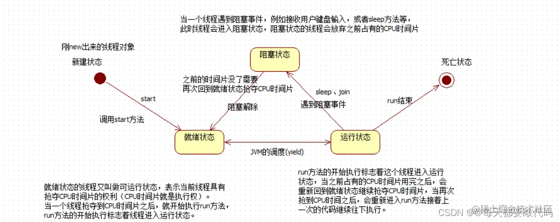 yield()方法的执行会让当前线程从“运行状态”回到“就绪状态”。