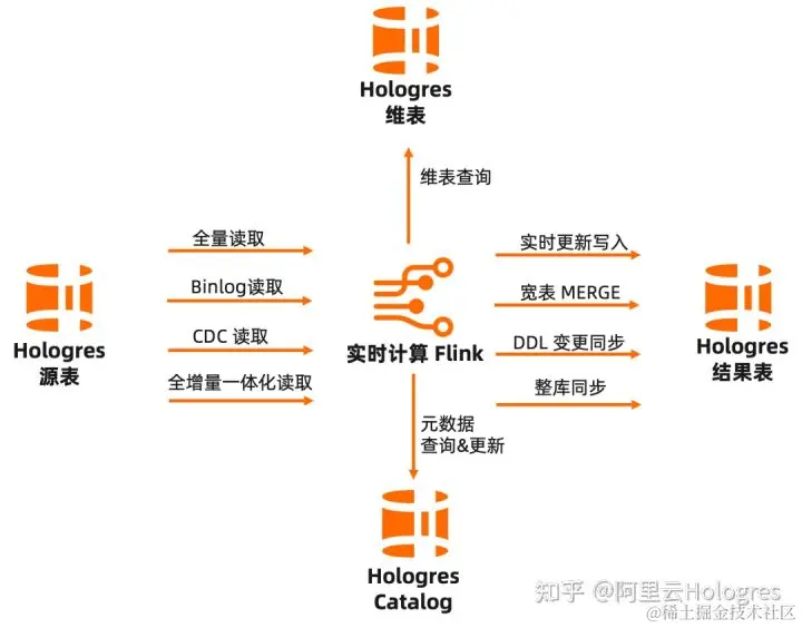 - 可通过阿里云 Flink 读取 Hologres 维表,助力高性能维表关联、数据打宽等多种应用场景;