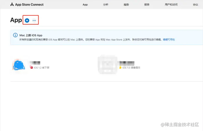 1、登录苹果开发者中心,进入app store connect页面,假如还没有创建app,则需要创建app