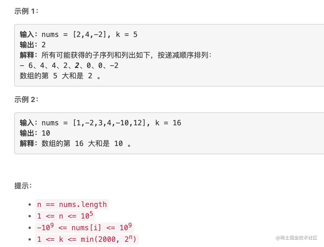 数组的 第 k 大和 定义为:可以获得的第 k 个 最大 子序列和(子序列和允许出现重复)