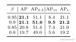 在HLA中,作者为ERF设计了阶段因子β,以缓解异常值效应。在表3中,作者保持所有其他参数不变,实验表明0.9是最佳选择。将β设置为较低的值将引入太多的低质量样本。