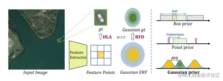 为了缓解上述问题,作者引入了一种新的基于高斯分布的先验知识,并建立了一种基于高斯感受野的标签分配(RFLA)策略,该策略更有利于微小对象。
