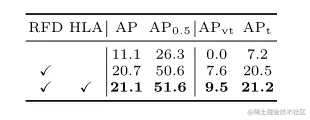 作者逐步将RFD和HLA应用到更快的RCNN中。结果列于表2,AP逐步改善,从而验证了个体有效性。