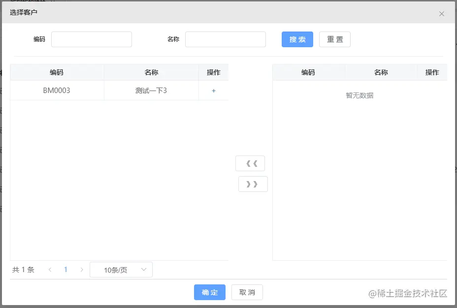 以上问题无法通过简单的下拉多选框或下拉单选框实现,因此使用弹窗表格实现单选和多选功能。