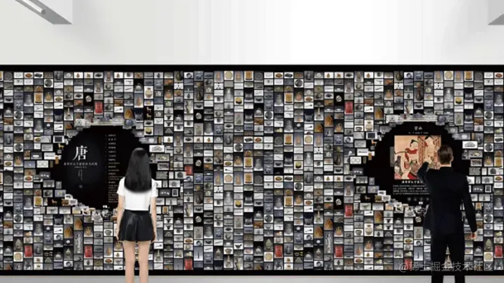 互动照片墙是墙面互动的一种重要表现形式,它的实现主要利用了雷达控制系统实现了图文、视频的展示,大量的图片信息从左向右依次流动展示,用户只需点击便能查看大图或者播放视频。