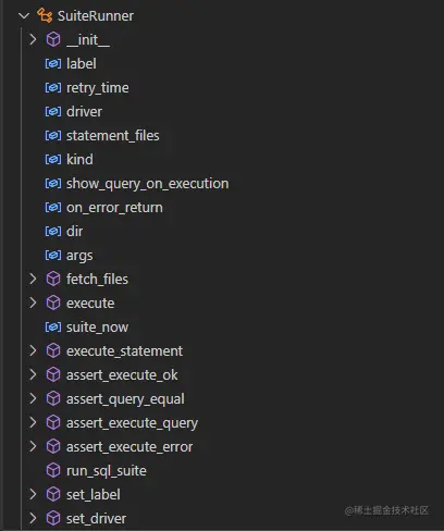 这些方法是执行 sqllogictest 的核心,除此之外 SuiteRunner 类还会保存执行过程中的一些状态和控制变量。