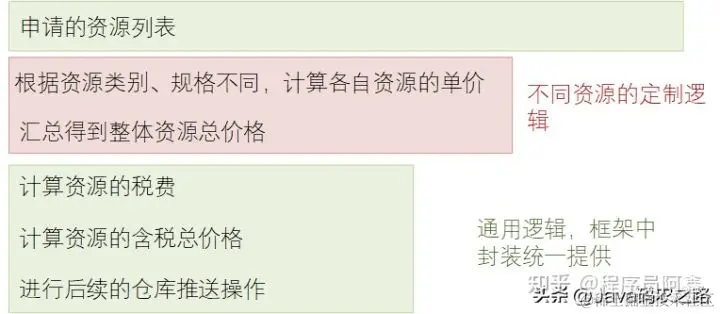 因为我们要做的是一个通用框架逻辑,且申请的资源类型很多,所以我们显然不可能直接在平台框架代码里面通过if else的方式来判断类型并在框架逻辑里面去写每个不同资源的计算逻辑。
