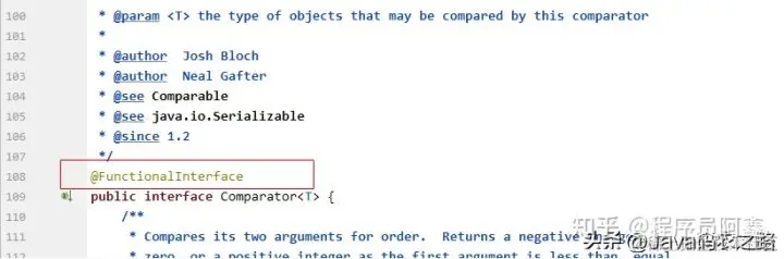 但是,我们在看JDK源码的时候,也会看到有些函数式接口里面有多个抽象方法。比如JDK中的 Comparator接口的定义如下: