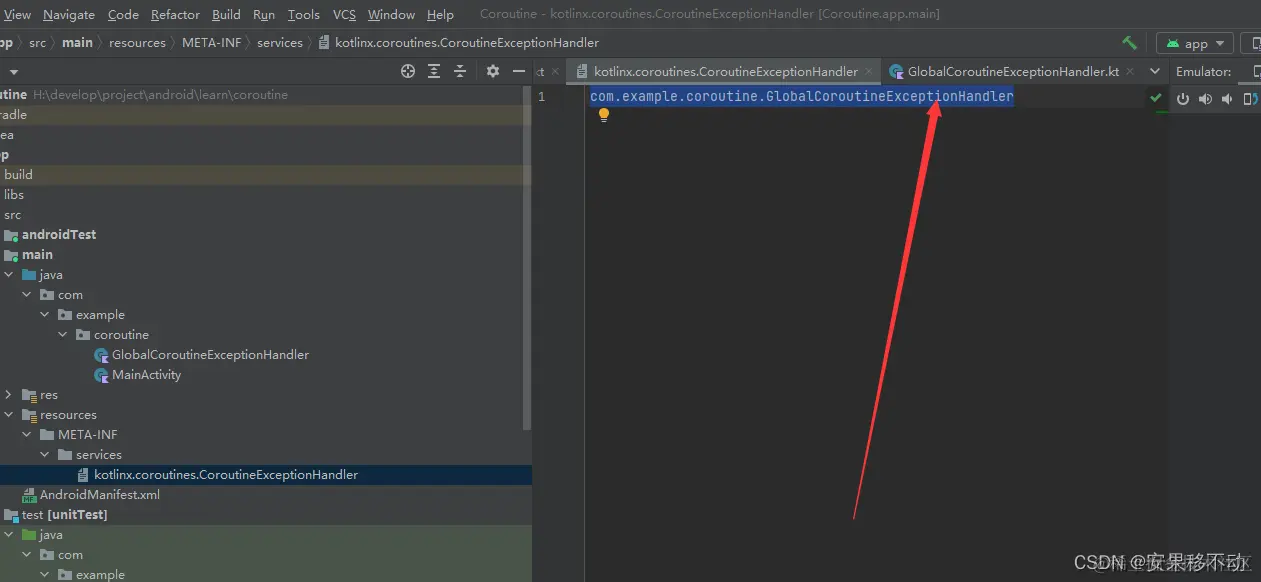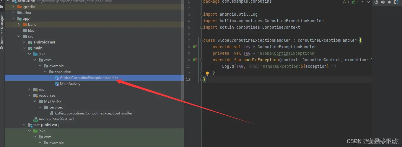 新建 resources\META-INF\services\kotlinx.coroutines.CoroutineExceptionHandler