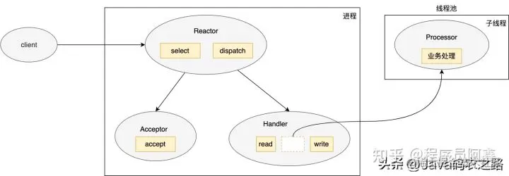 - 一旦子进程中有新的事件被监听到了,则 subReactor 会将其交给 Handler 进入处理
