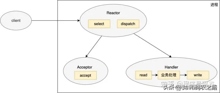 - Reactor 对象首先调用 select 来监听 socket 事件,收到事件后会通过 dispatch 分发