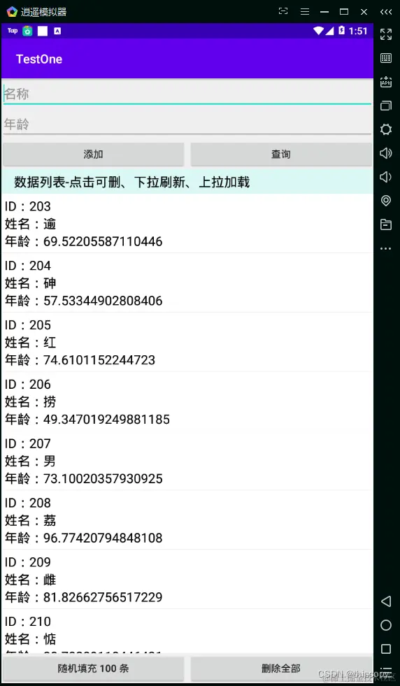 android:text="数据列表-点击可删、下拉刷新、上拉加载"