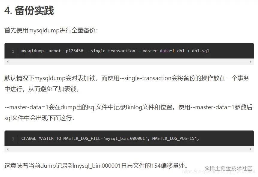 参考:mysqldump --master-data=2 --single-transaction_linuxheik的专栏-CSDN博客