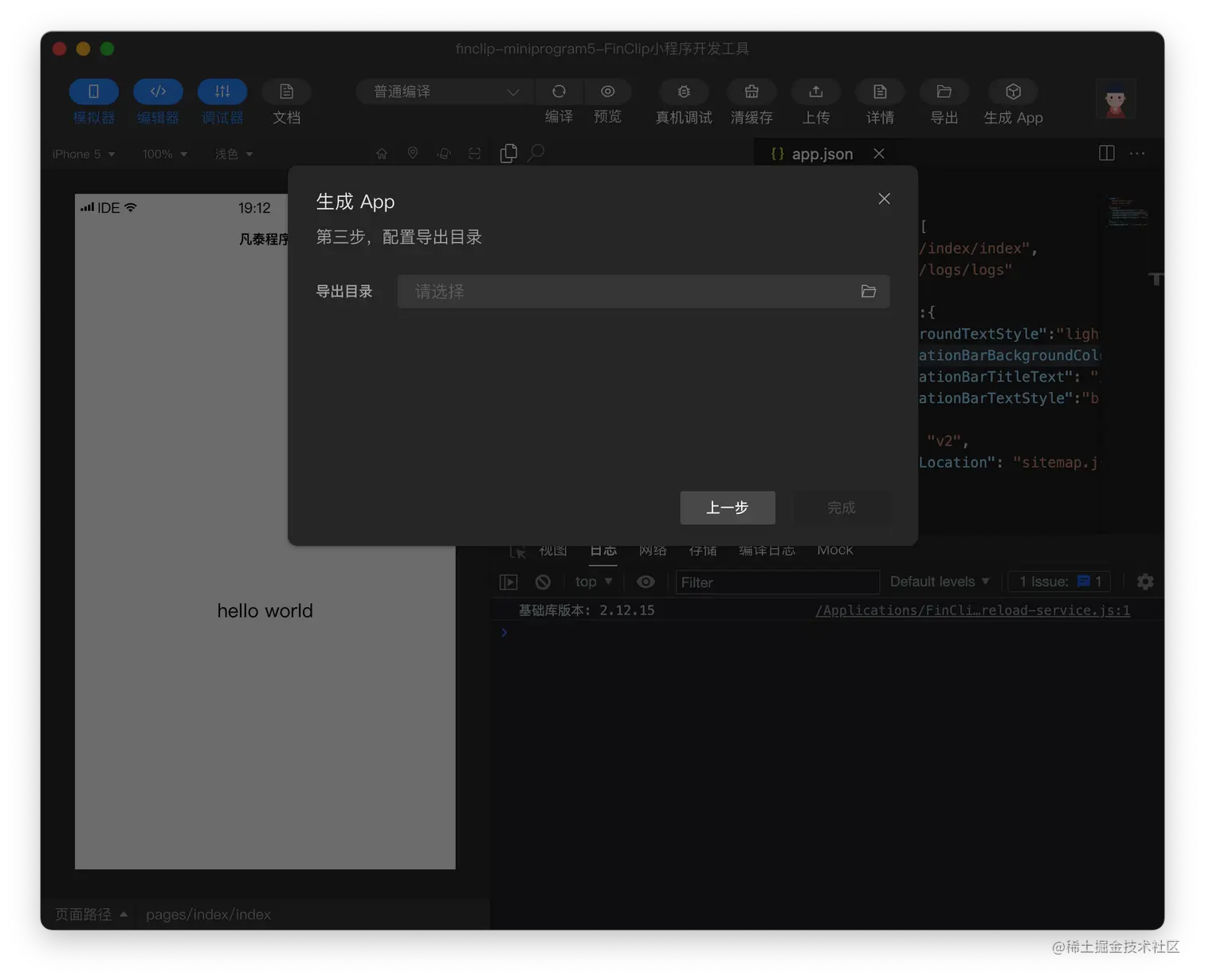 选择小程序转为 App 的工程文件目录后,点击完成按钮。