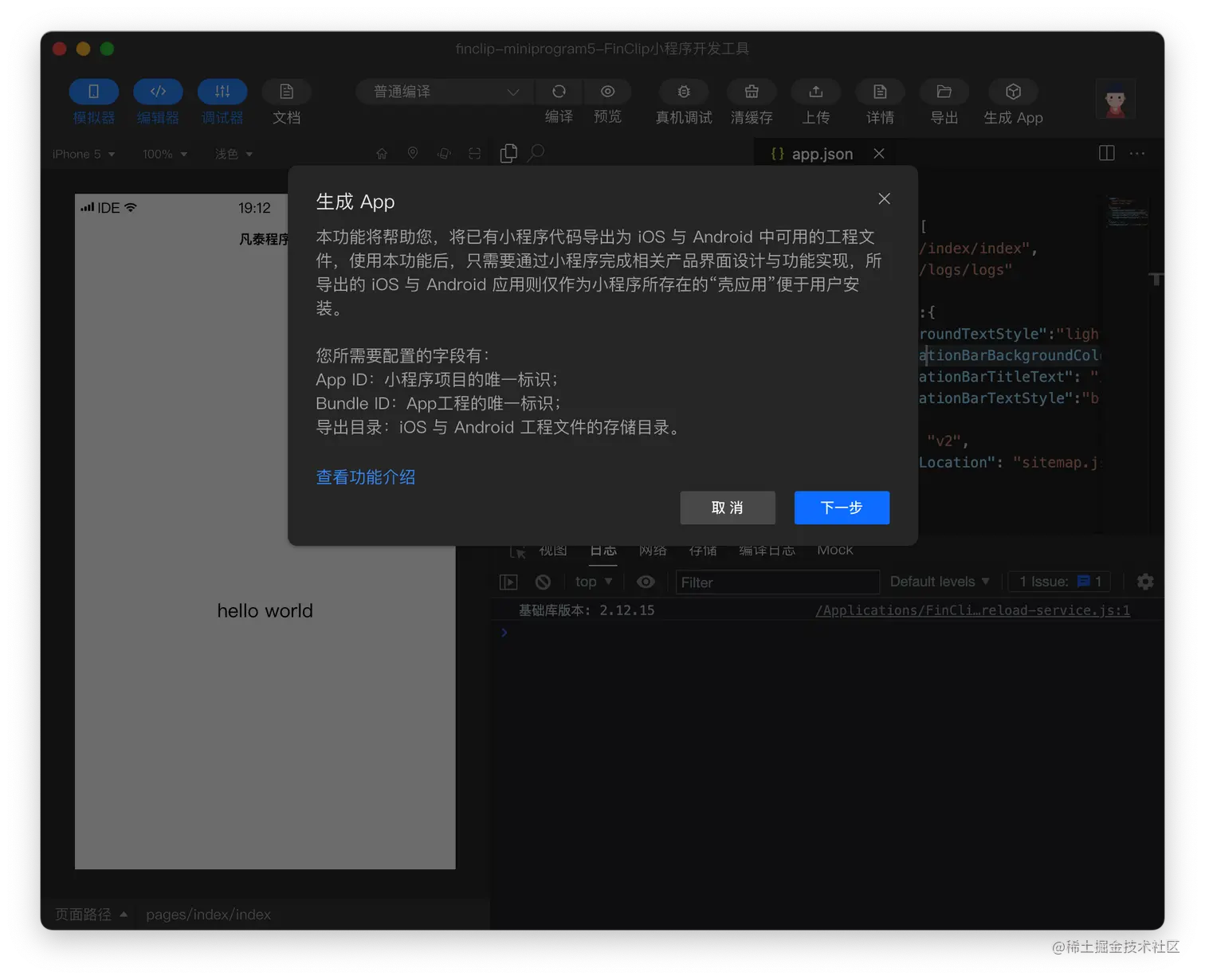 三、小程序生成 App 工程
