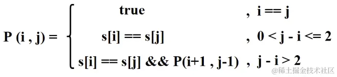 } else if j-i <= 2 { // s[i] == s[j] 并且i、j间距小于等于2的子串都为true,比如aba(2-0=2) aa(1-0=1) a(0-0=0)等于0也就是单独字符本身