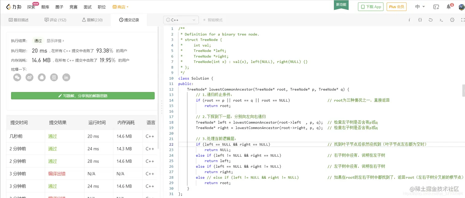 3、如果pheq都是root的右节点,那么返回lowestCommonAncestor(root->right, p, q)