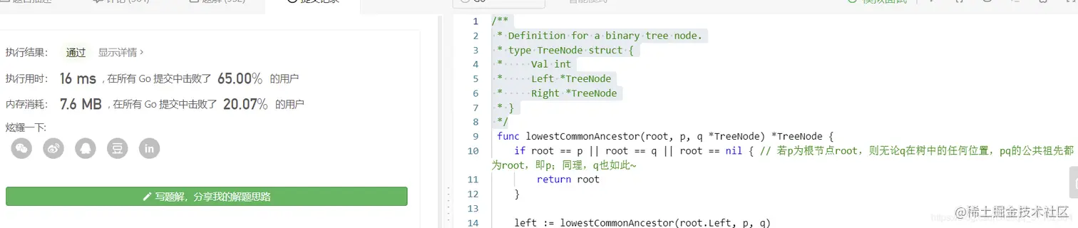 func lowestCommonAncestor(root, p, q *TreeNode) *TreeNode {