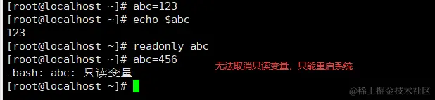 readonly 命令设置只读变量