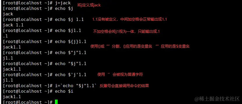 单引号' ':会把引号的内容当成整体来看待。弱引用,禁止引用其他变量值,单引号内的内容都会被认为是普通字符。