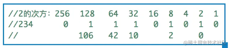 步骤2、十进制数依次减去 2的次方,减去大于0的计为1,小于等于0的计为0