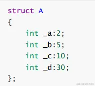 先看一个位段的类型是int是4个字节,所以现在一个int类型的4个字节中放满或者放不下的时候再使用下一个int的4个字节依次放入,这里a,b,c一共占12个比特位在内存的存放是依次存放,而d需要30个比特位放不下了,所以再使用下一个int的4个字节来放,两个int就是8个比特位。