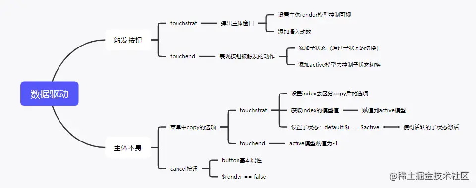 菜单选项是通过copy模型去控制每个组件的样式一致的,如果想要区别,需要使用到子状态的功能,有二点情况:1.如果是单个区分的话,只需添加$defaulu:N(N表示你要控制的组件索引值):2.如果是要通过某个事件去判断触发的对象,需要用到数据驱动的功能。