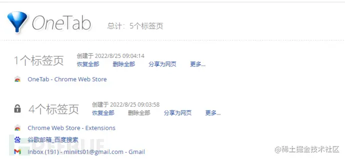 OneTab和BdTab的标签管理对比,OneTab在标签页管理类的是使用人数比较多的插件,