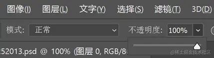 打开ps,在图层面板上,可以看到设置-图层调整 不透明度的菜单,从 0% (完全透明)到 100%(不透明)