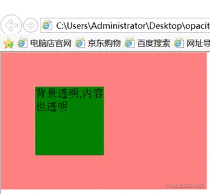 opacity适用情况:设置opacity的元素,不光设置的元素透明,后代元素也会继承opacity,一起也有透明效果,所以opacity一般用于调整个别图片,或者部分模块的的透明度
