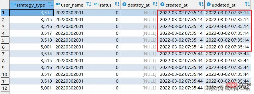 为什么第二次执行的时候,显示update 12行的数据且created at 数据更新了,而第一次会显示update 6行???