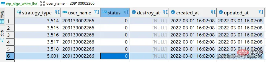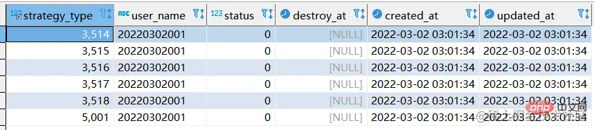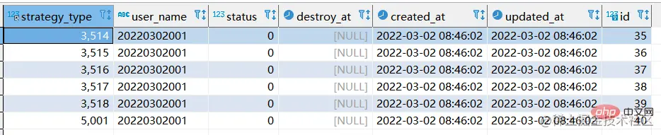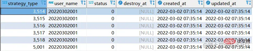 我们将strategy_type & user_name 联合唯一索引删除,且删除20220302001用户所有数据。最终表格结构如下: