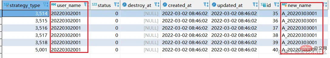 - 如下表格,将user_name的字段,20220302改为"A_20220303"显示,并且新字段叫做new_name显示