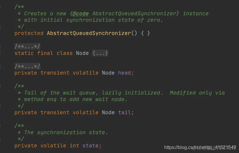 - 实质上是一个双向链表,节点Node类是AQS类中的类部类。
