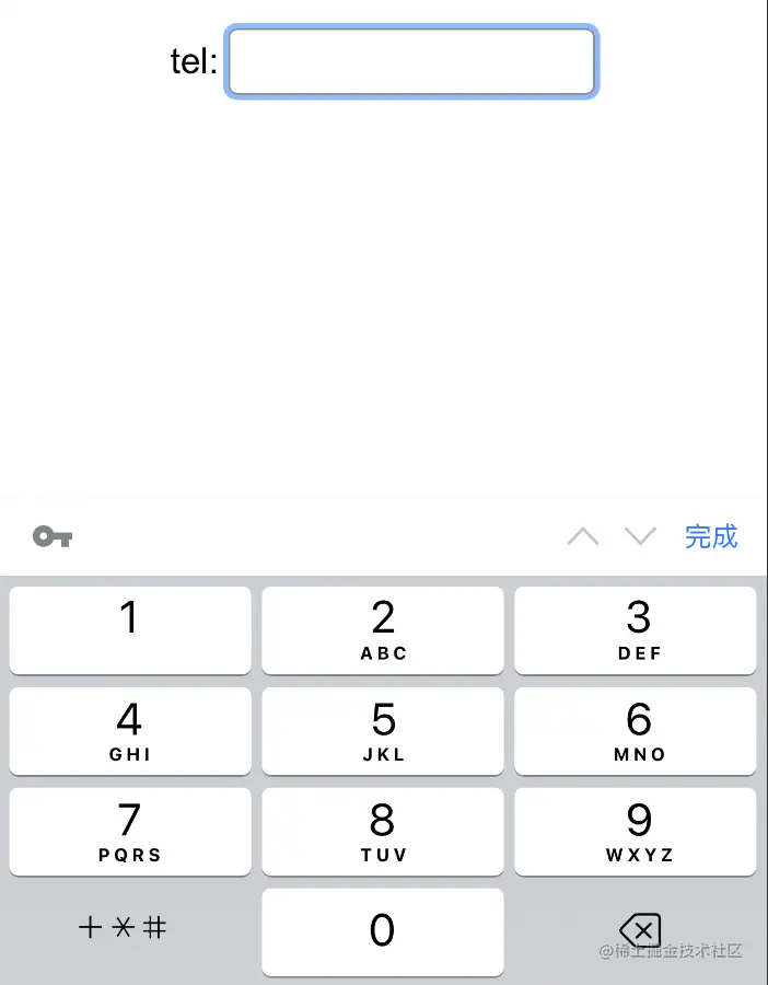 - tel: 手机数字键盘,会有星号 * 或者井号 # 键。