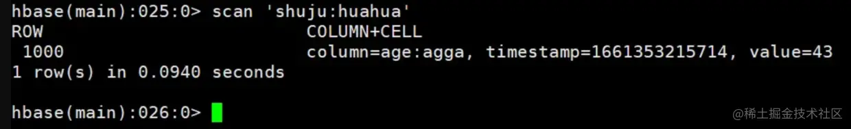 putCell("shuju:huahua","1000","age","agga","43");