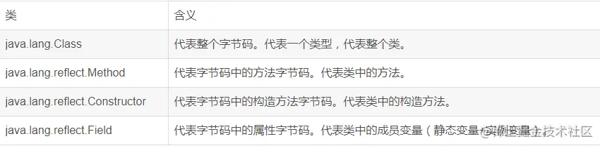 在Java中,JDK为我们提供了一些反射相关的API,如下表所示: