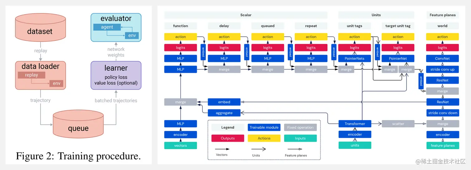 - ① 训练『星际争霸II』智能体(architectures/目录下)可以在在线和离线环境下使用不同的学习算法。