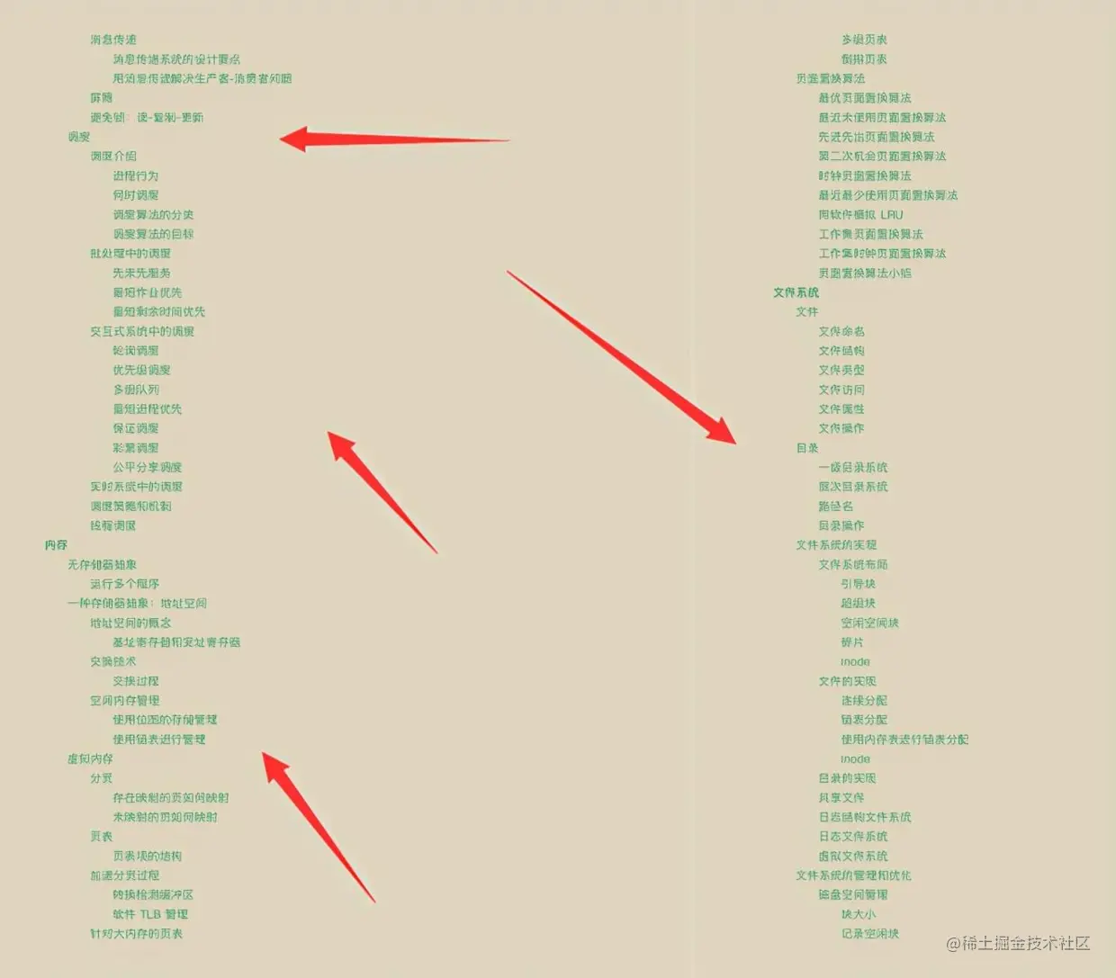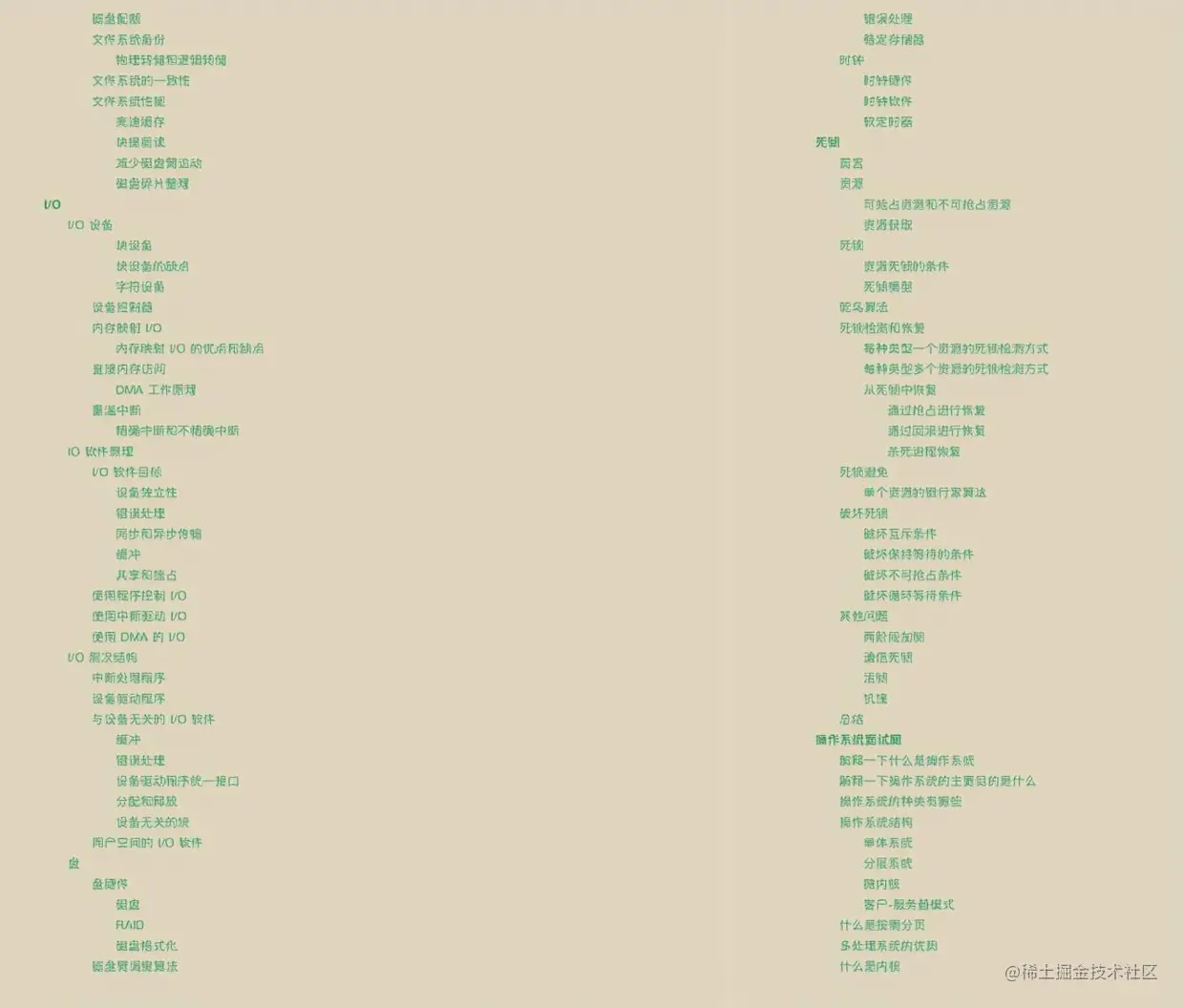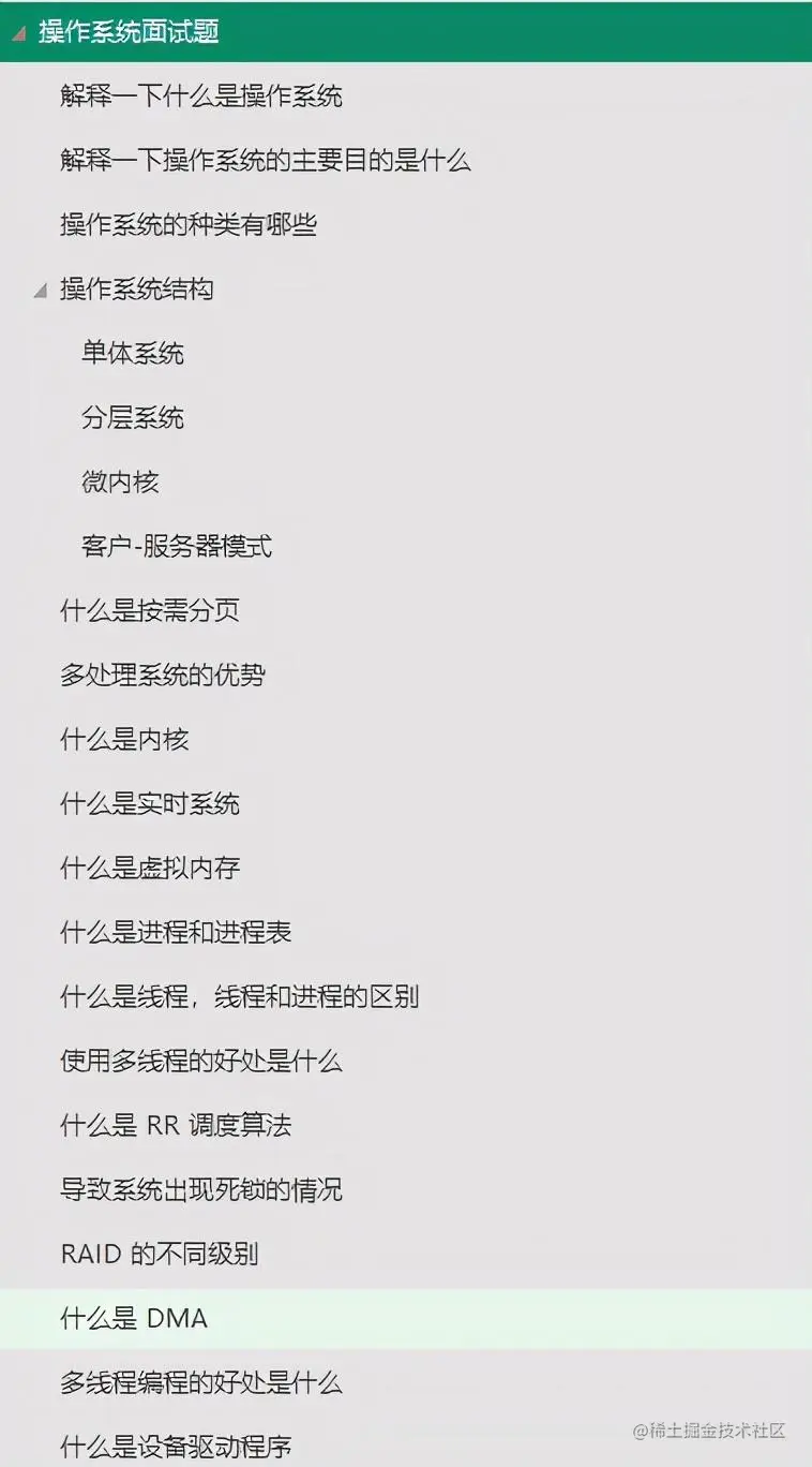 手册包含:认识操作系统、进程和线程、内存、文件系统、I/O、死锁、操作系统面试题等七个知识汇总