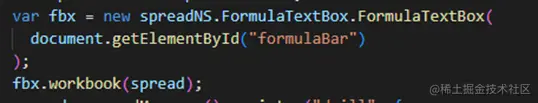 为了能够更加清晰看到单元格对应的公式,这边也添加了一个公式栏和Spread进行绑定,通过以下代码即可。
