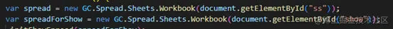 我们可以把上方的工作簿对象定义为spread,把下方绘制公式树的工作簿对象定义为spreadForShow,在默认情况下,我们通过css将spreadForShow进行隐藏。 我们通过下面的代码将两个工作簿实例进行初始化。