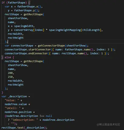 最后就是根据前面构造出来的节点,以及预定义好的形状方法进行公式树的绘制。在这个if-else中,如果节点是父节点,则通过连接器型装将子节点相连接,如果没有子节点则无需连接。在creatNodeTree方法中,定义的节点信息,通过拼接的方式,将节点信息设置在对应的矩形上。也就是一个一个节点往下绘制,直至绘制完成。