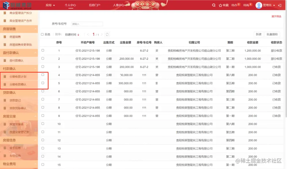 如不动产管理模块,一定程度取代了地产的售楼系统,售卖不动产后可生成收款台账、付款跟进、贷款登记、分期收款记录等信息。