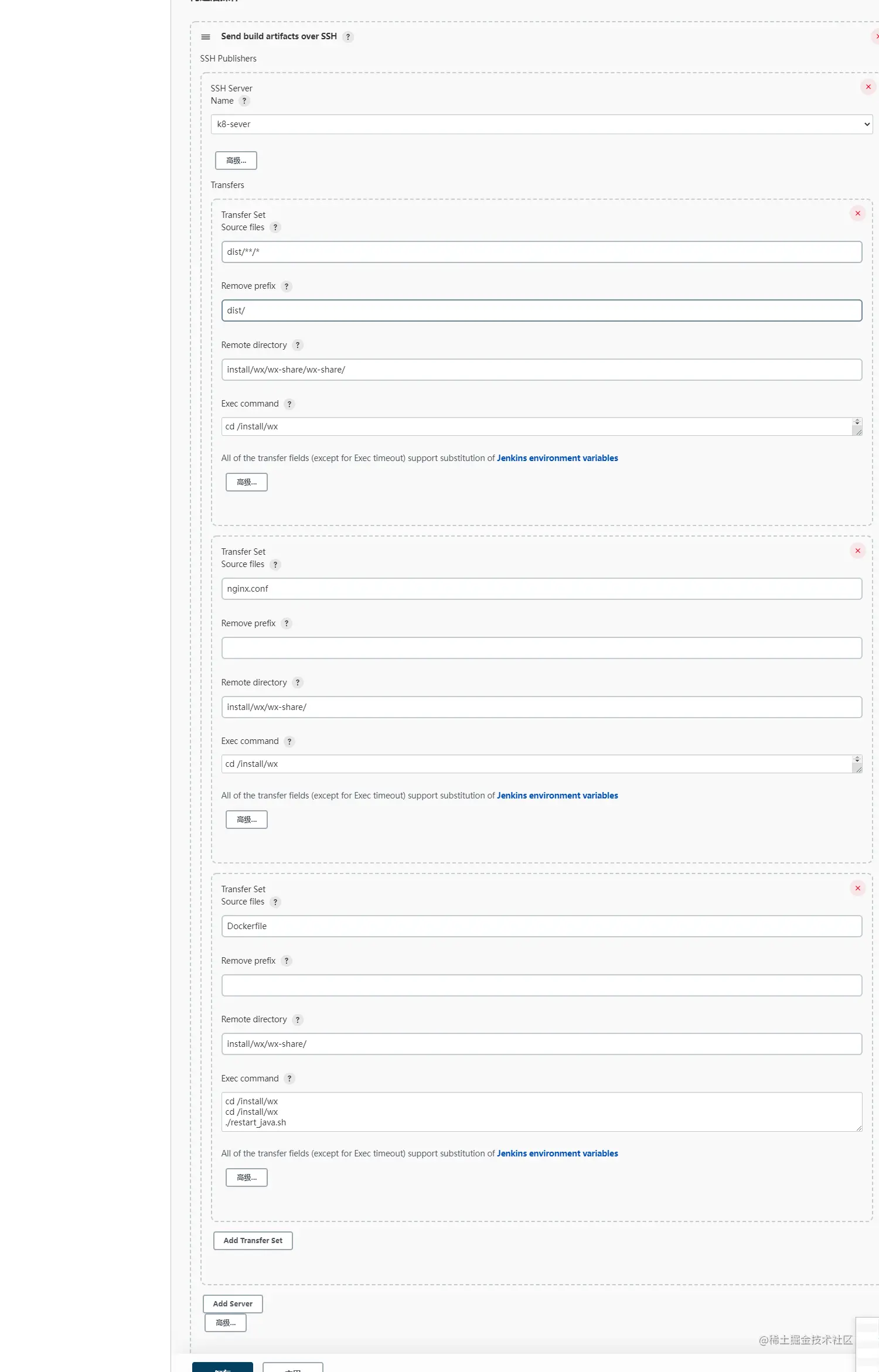 配置 over SSH步骤3:在jenkins的web管理界面新增一个刚才发送过公钥的服务器