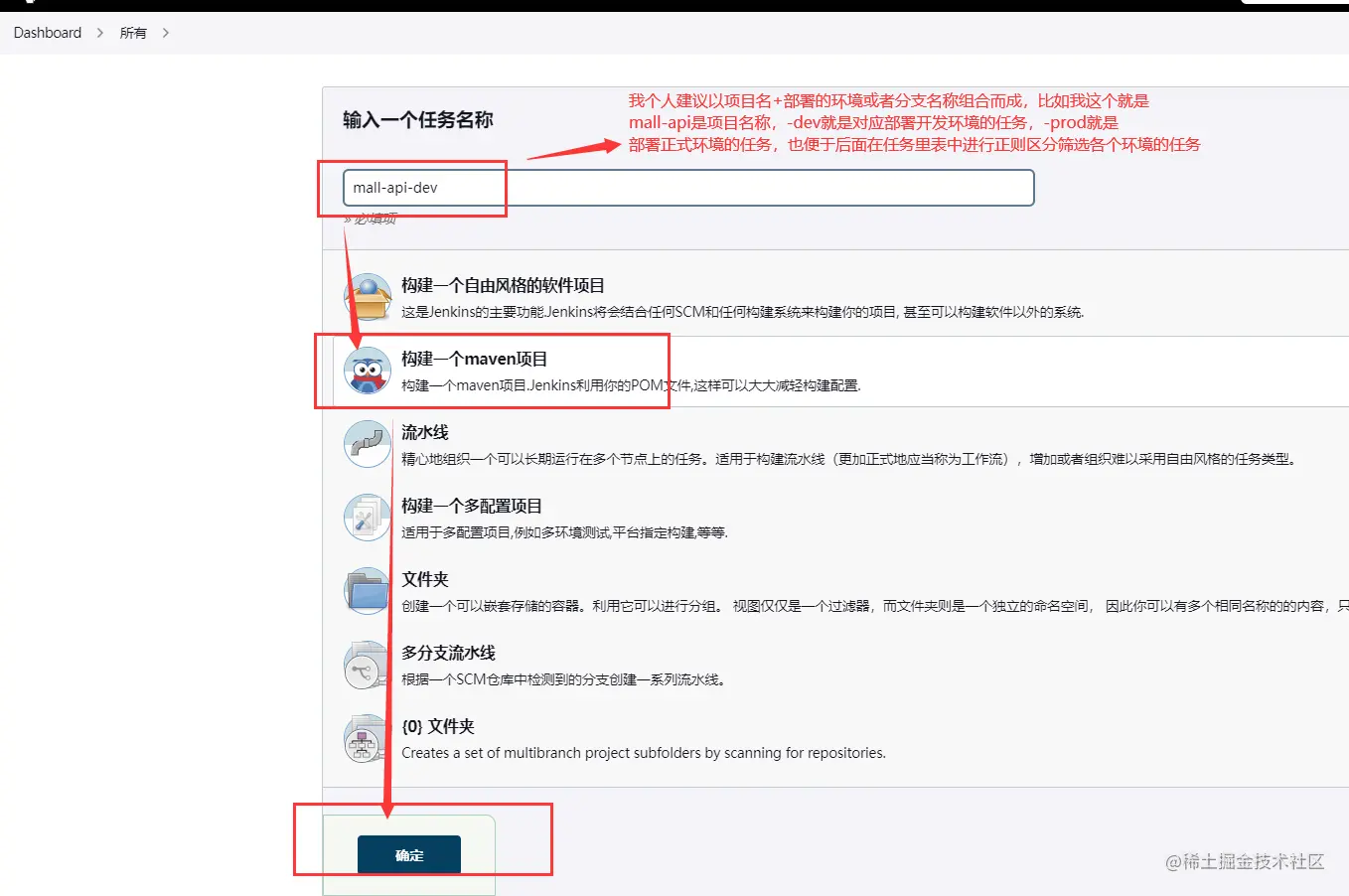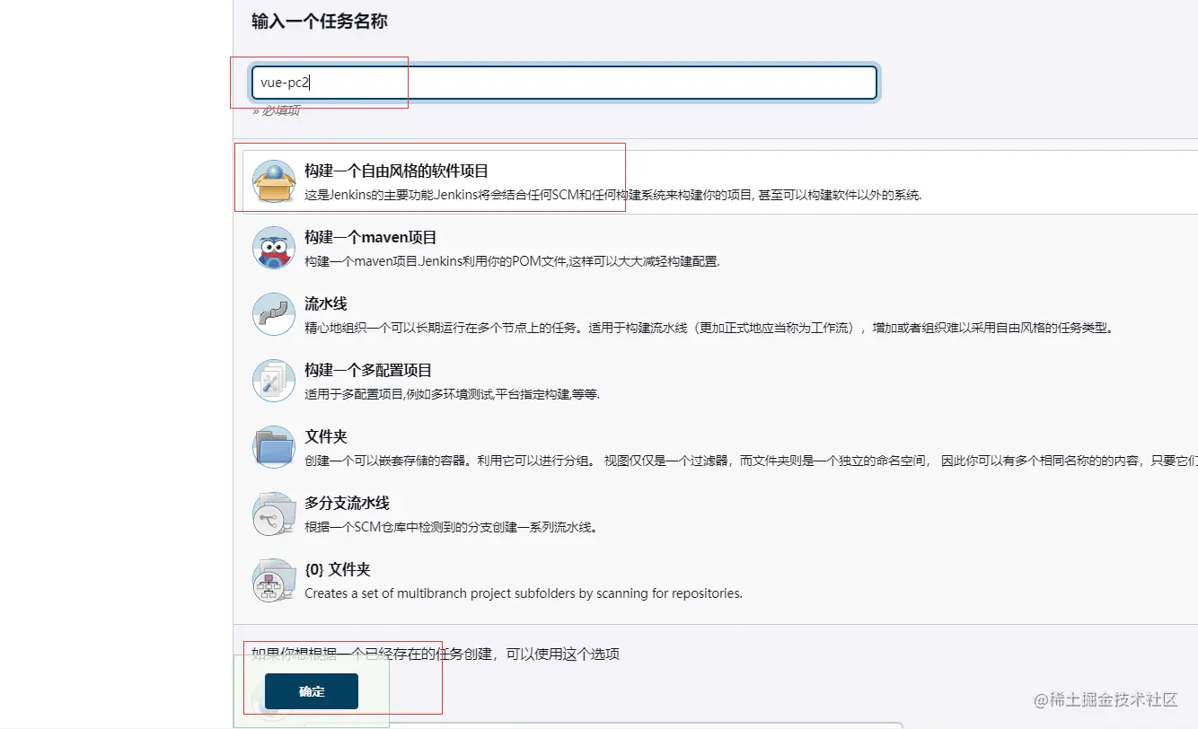 首页==》新建任务==》输入项目名称(一般可以和git仓库中的项目名称一致)==》选择构建一个maven项目==》点击确定