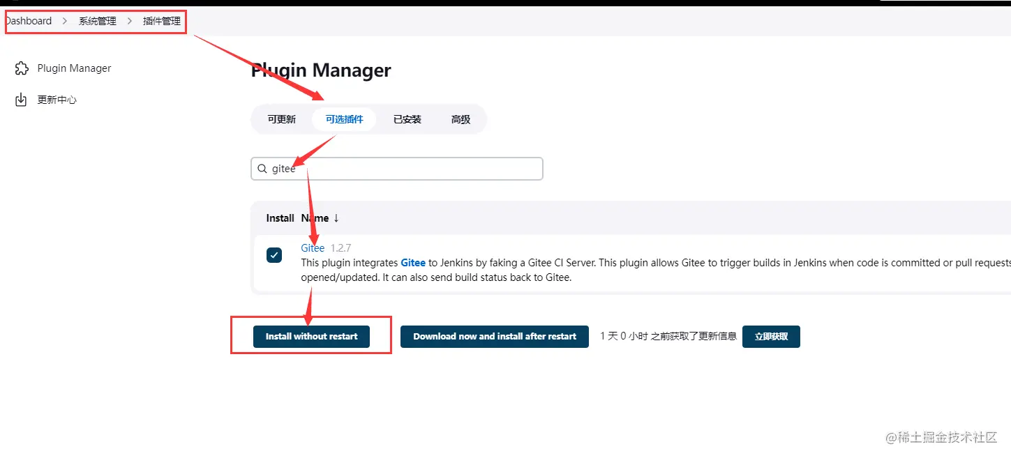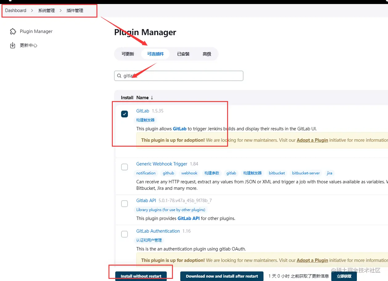 安装gitlab插件或者gitee插件,取决于你的代码是用的哪个仓库,如果都在用,这两个插件都可以下载