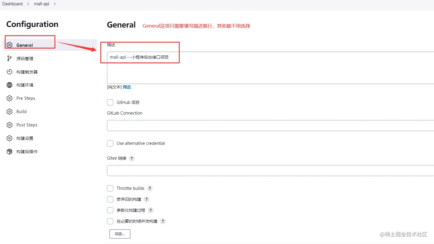 选择General,这一项只需要输入项目描述就行